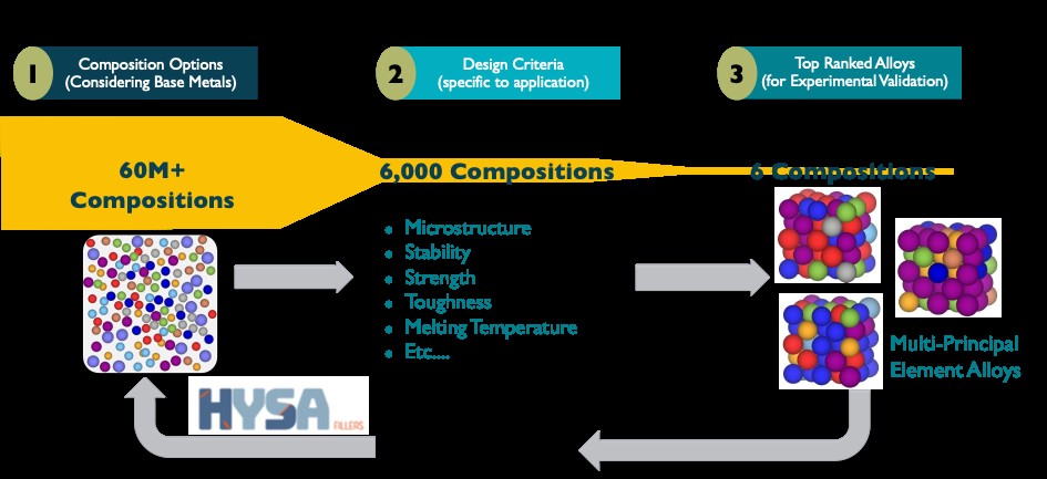 Brazing is a critical joining process for assemblies that demand high geometric precision or careful control of material inter-dilution with similar and dissimilar material joining cases. The choice of filler metal requires balancing several factors: (1) the thermal compatibility of the substrate(s) with the filler’s recommended brazing temperature, to ensure controlled microstructure evolution; (2) the phase constituents that form in the joint as the filler dilutes into the substrates; and (3) the long-term reliability of the brazed component under service conditions. However, existing brazing filler metals, especially for brazing of Ni-base alloys and steels, with boron and silicon as melting-point depressants often fall short in providing adequate ductility, especially at wide gap widths, necessitating the use of expensive noble metal fillers based in gold and palladium to be used instead. This work built a fast screening material design engine to develop new multi-principal element braze filler compositions designed for brazing steels and Ni-base alloys in two disparate temperature ranges approximately 990 – 1050°C and 1170 – 1200°C. Metallurgical characterization of brazed joints demonstrated complete metallurgical compatibility with their substrate material(s) with accommodation of base material elements and no terminal intermetallic phases in the resultant joint metal regardless of the initial joint clearance. Significant improvement was also observed in the mechanical testing results compared with existing braze fillers. For instance, brazing of a single-lap Joint stainless-steel geometry with fixed 50µm clearance using the new filler produced gains of 460% in elongation over BNi-5 filler, along with a 65% increase in engineering shear strength.